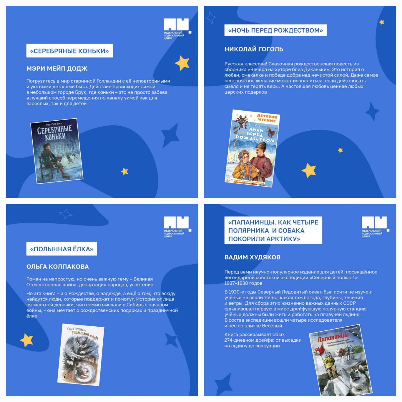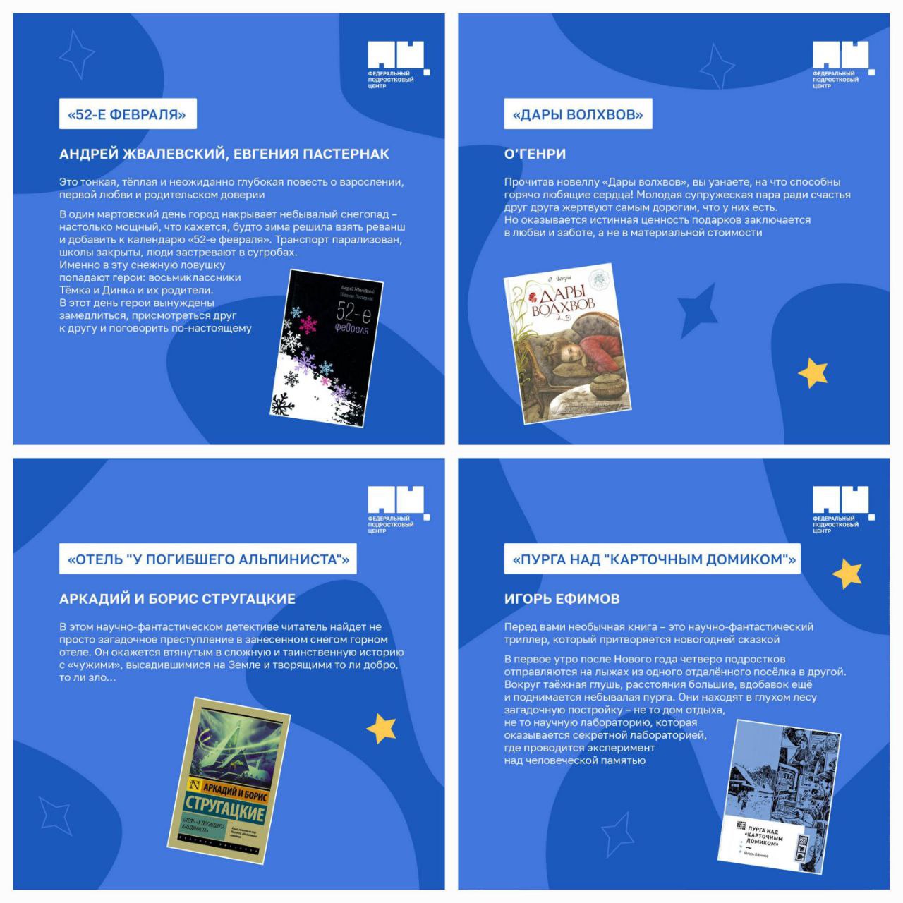 Что почитать на зимних каникулах? Федеральный подростковый центр собрал в карточках книги️, которые перенесут подростков в мир невероятных зимних историй и приключений.
