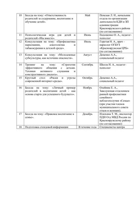 Также активно привлекаются специалисты органов профилактики безнадзорности и правонарушений несовершеннолетних. Мероприятия в «Школе для родителей» проводятся ежемесячно, в соответствии с планом работы на текущий год.