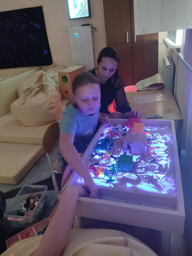 Тревожность, страхи, замкнутость, нарушения поведения, переживания травматических событий - это лишь малая часть проблем, в работе с которыми эффективна песочная терапия. В процессе игры ребенок прорабатывает личностные конфликты, обыгрывает их символически или вербально, находит ответы на вопросы и способы решения разного рода проблем. Преимуществами песочной терапии являются: - диагностика психологических и эмоциональных проблем; - безопасное выражение эмоций, способствующее их осознанию и проработке; - развитие социальных навыков, умения взаимодействовать со сверстниками, навыков решения конфликтов, умения сотрудничать; - укрепление самооценки, умение брать на себя различные роли, справляться с вымышленными проблемами. Совершенно очевидно, что игра в песок захватывает и взрослых, и детей — вспомните, как приятно бывает присоединиться к игре в «куличики», построить замок на морском берегу или просто смотреть, как высыпается сухой песок из вашей ладони. Так и дети в нашей сенсорной комнате, погружаются в атмосферу игры, восторга и удовольствия!
