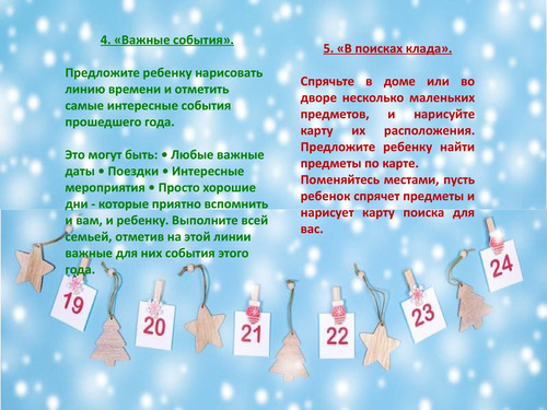 Мы продолжаем создавать атмосферу дружелюбия, доверия, тепла и уюта в семье с нашим психологическим адвент-календарем. Чтобы почувствовать предновогоднее настроение, хорошо провести время с близкими людьми️, добавьте в дни ожидания праздника элемент активного общения. Интересные задания, вопросы помогут замедлиться, задуматься, оглянуться назад и посмотреть вперед, поговорить о важном для всех вас.